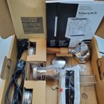 LELIT58 2-ways portafilter with smoked oak wooden gem-shaped handle and Coffee Slide spout / LELIT58 filters for 1 dose (9-11 g), 2 doses (14-18 g), 2 doses (18-21 g) and blind in collaboration with IMS / LELIT58 tamper with smoked oak wooden gem-shaped handle / cup rack / 70 l water softener filter / first cleaning kit / small brush with nylon bristles / L58E group gasket